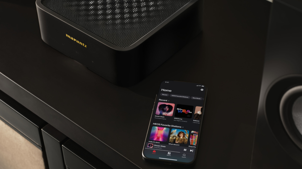 Die HEOS-App bietet von jedem Ort im Haus volle Kontrolle über die Funktionalität des MODEL M1. Für eine umfassendere Integration in benutzerdefinierte Installationsumgebungen ist das MODEL M1 zusätzlich mit einer breiten Palette von Steuerungssystemen von Drittanbietern kompatibel, wie z.B. von Crestron und Control4. HEOS verfügt über eine IR-Lernfunktion, sodass Sie bei Bedarf Fernbedienungen anderer Marken verwenden können.