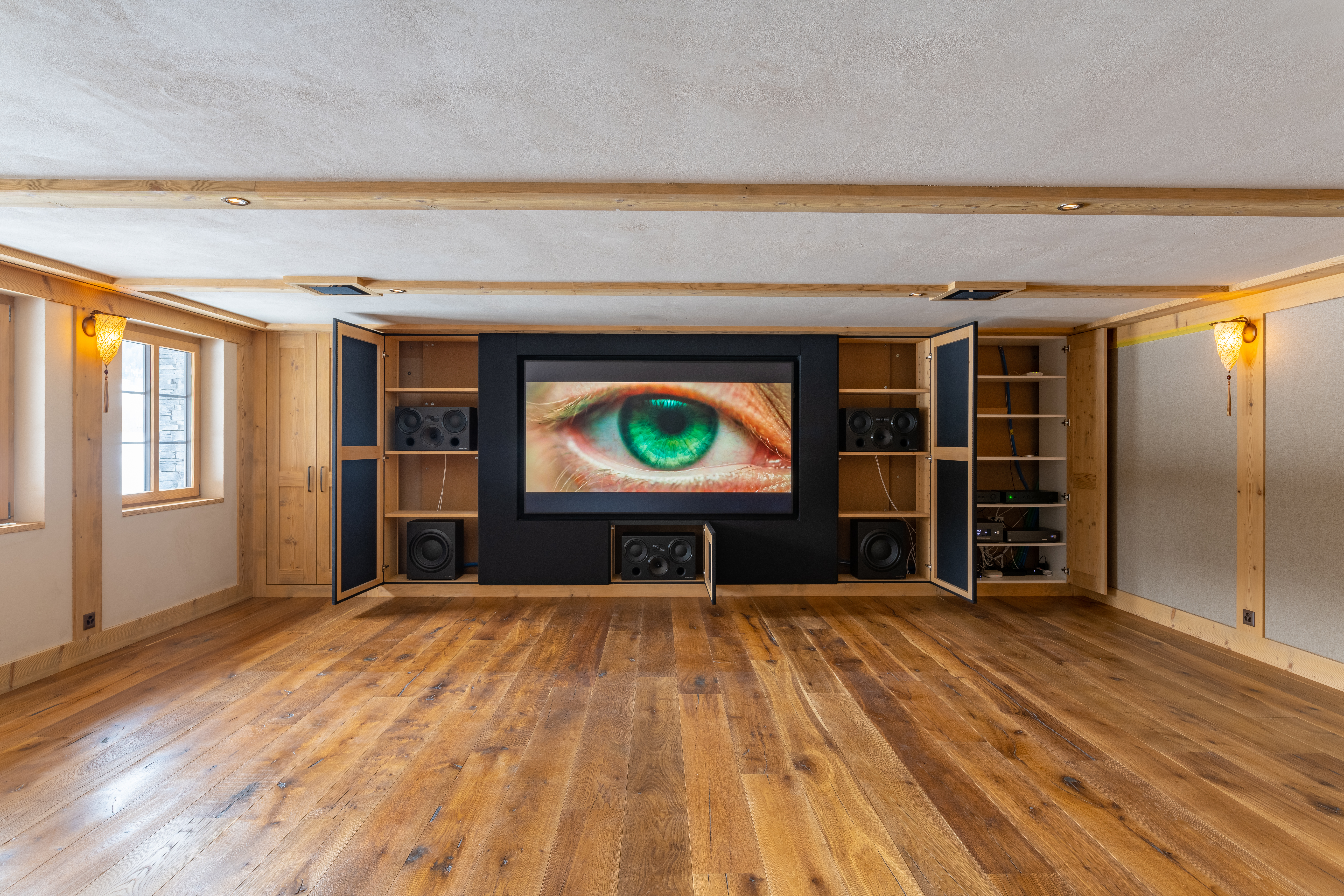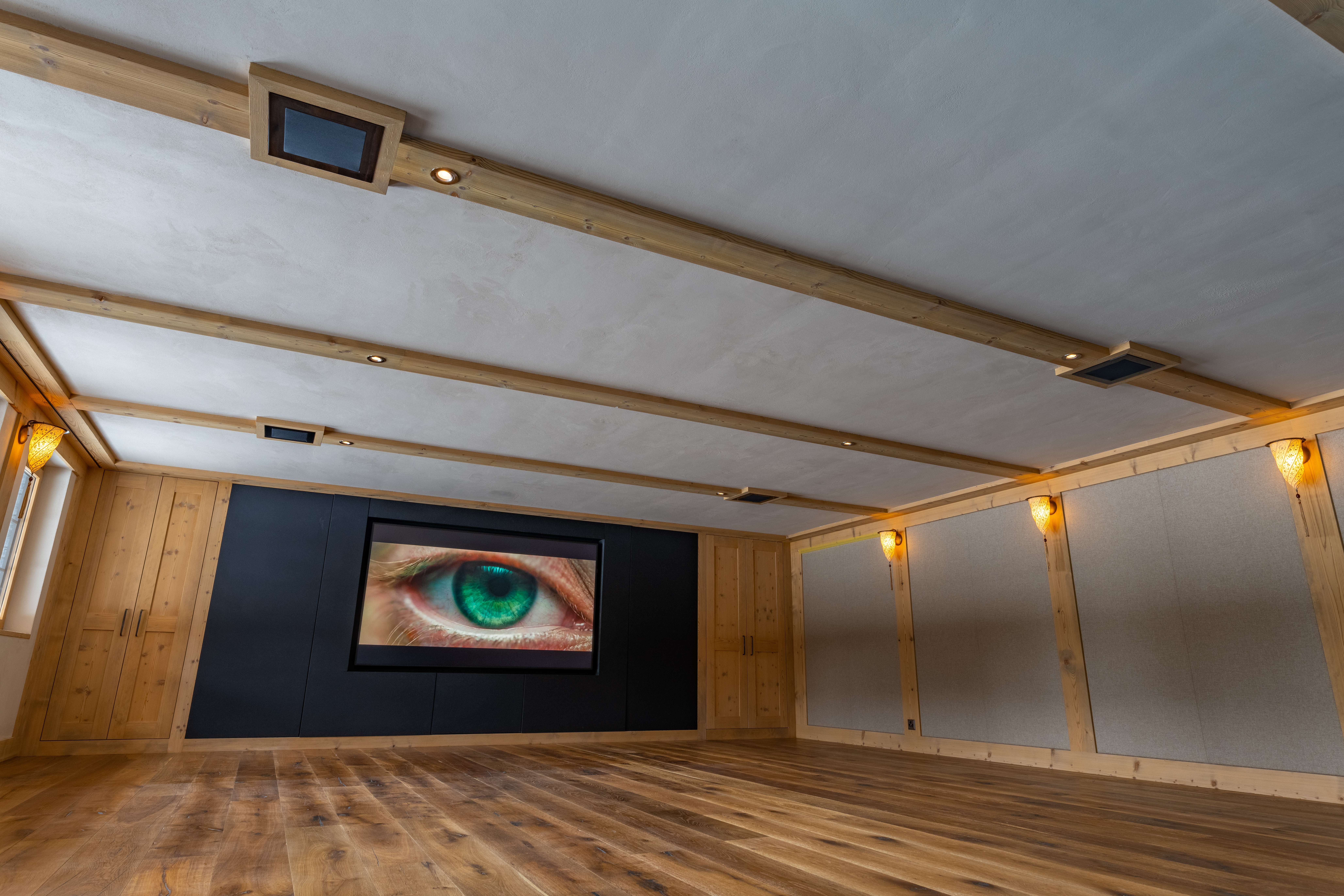 Der Umbau eines Chalets im Berner Orberland liess Platz für einen grossen Kinoraum. Dieses System soll einfach zu bedienen sein und die Audio- und Videokomponenten sowie das Licht umfassen.