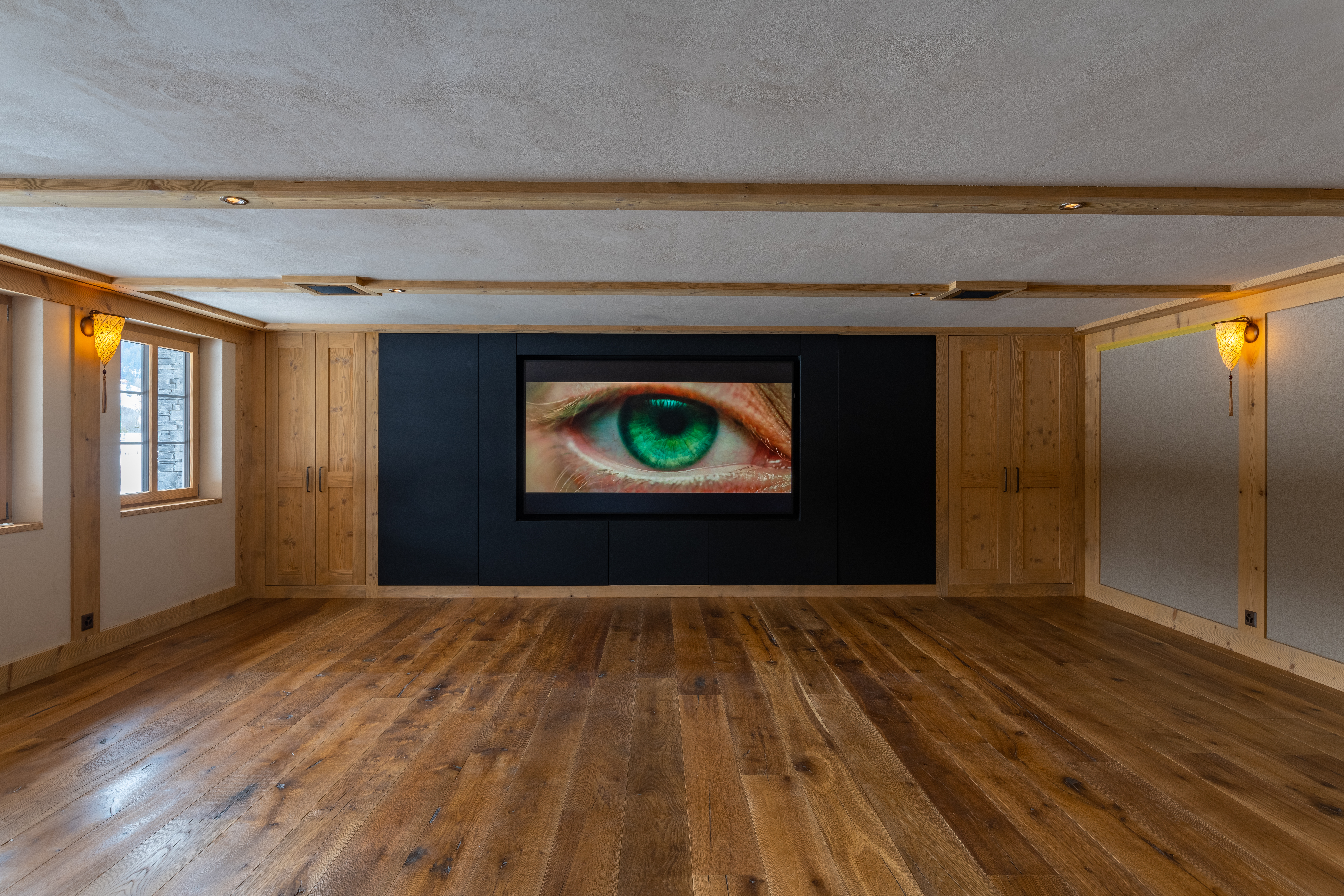 Der Umbau eines Chalets im Berner Orberland liess Platz für einen grossen Kinoraum. Dieses System soll einfach zu bedienen sein und die Audio- und Videokomponenten sowie das Licht umfassen.