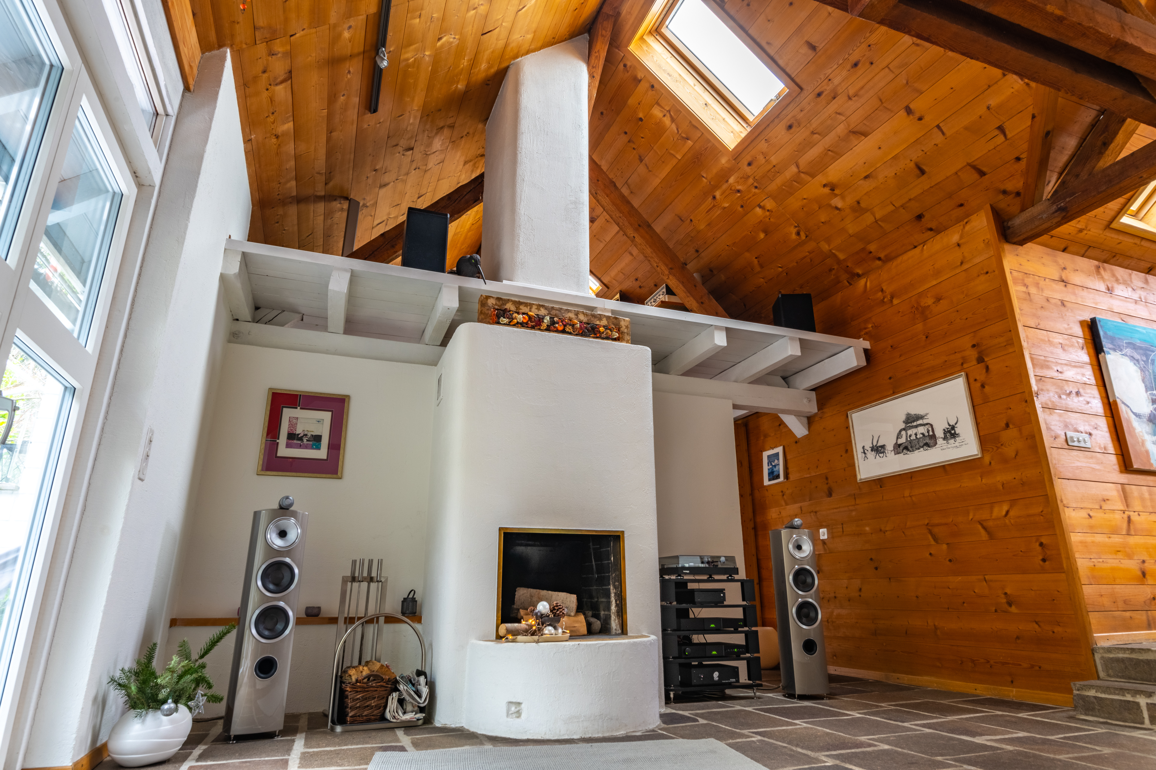 Kompakte HiFi Anlage beim Kamin