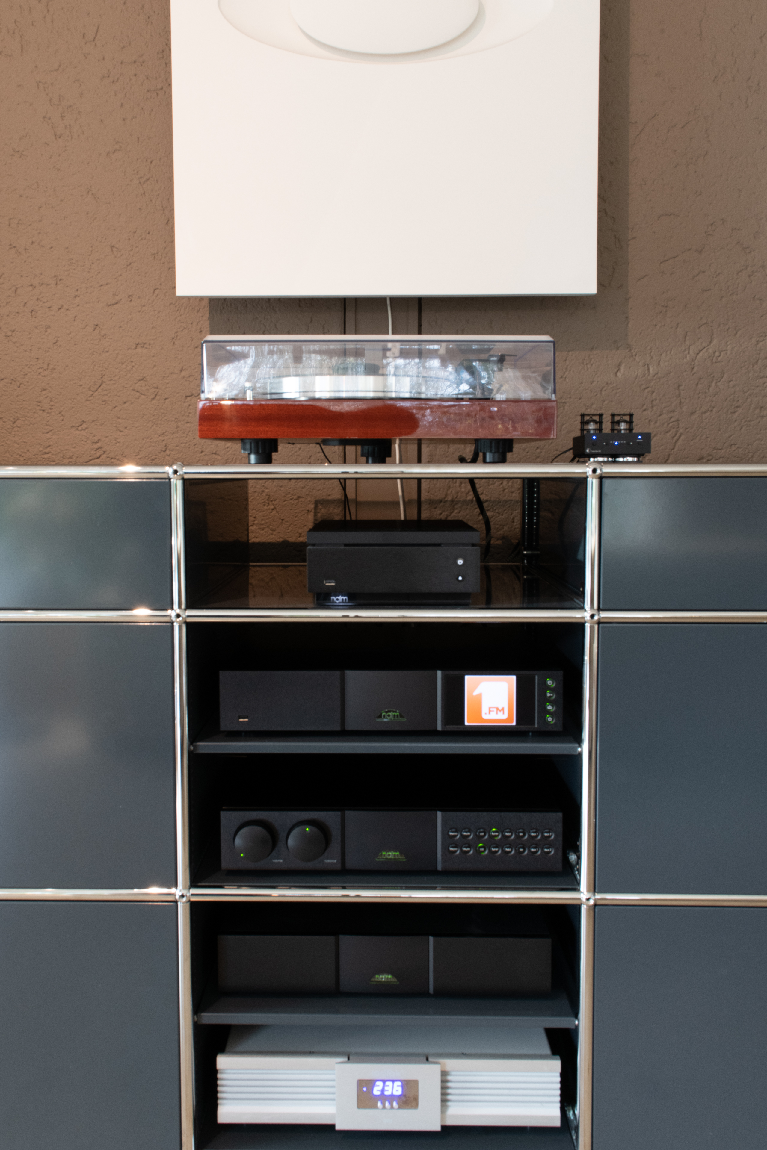 Als Quelle dienen der Streamer Naim NDX 2, der CD-Rippingserver Uniti Core sowie ein Plattenspieler von Thorens.