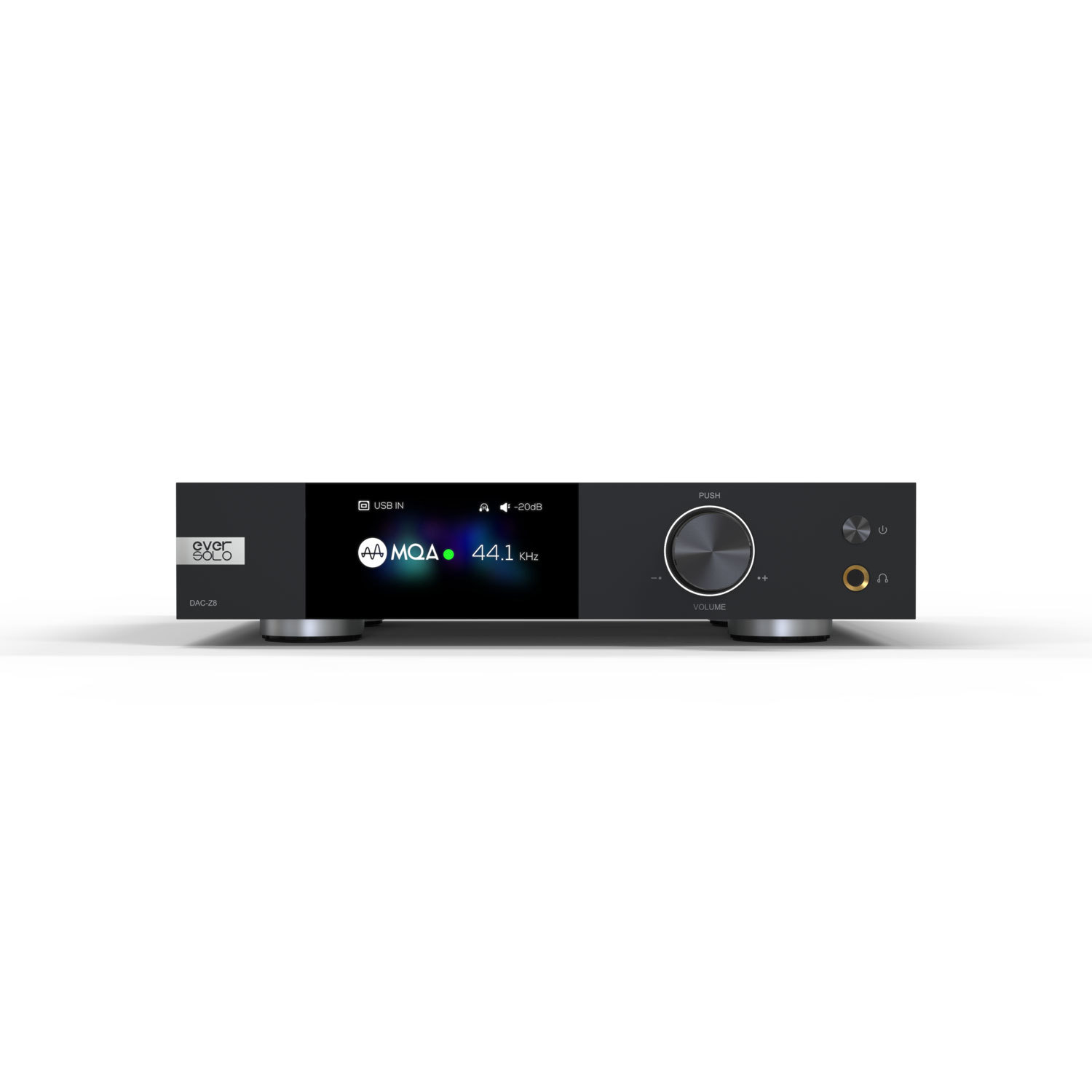 Das Gehäuse des DAC-Z8 besteht aus hochwertigem Flugzeugaluminium und ist mit einem 3-Zoll-LCD-Display ausgestattet. Sie können den DAC-Z8 bequem über die beiliegende Fernbedienung, die Eversolo App für Smartphones oder den Multifunktions-Drehregler am Gerät steuern.