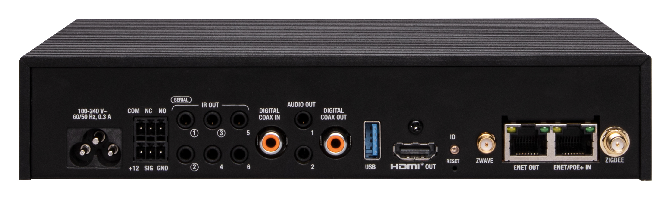 Der CORE 3 kann eine breite Palette von Unterhaltungselektronikgeräten steuern, wie z.B. Ihr Fernseher, Ihre TV-Box, Ihr BluRay-Player, Ihr Verstärker und bietet dafür diverse Schnittstellen wie Infrarot, RS232 und eine IP-Schnittstelle für die Ansteuerung der Geräte übers Netzwerk. Zudem hat der CORE 3 eine drahtlose Zigbee-Steuerung integriert, was es erlaubt, mit Zigbee Fernbedienungen, Zigbee Lampen, Zigbee Thermostaten, intelligenten Zigbee Schlössern und vielen weiteren Zigbee Produkten zu kommunizieren.