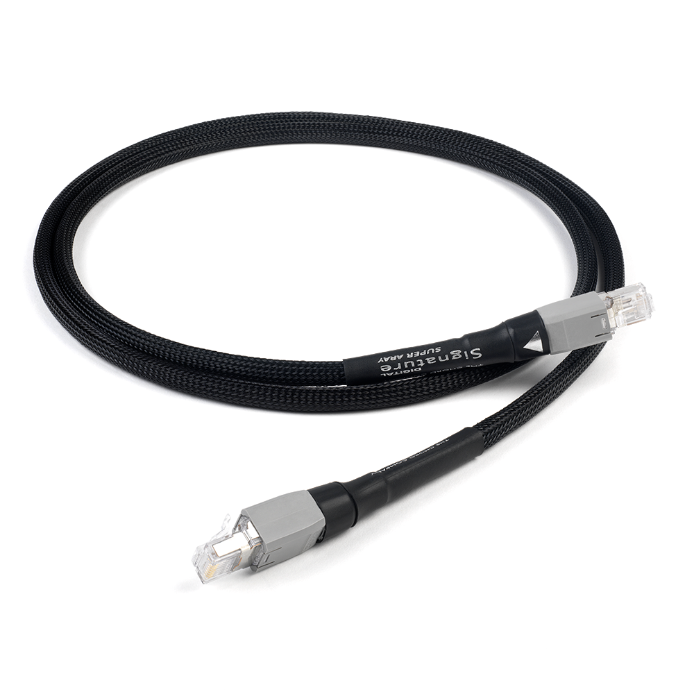 Das Signature Super ARAY Streaming-Kabel ist eine direkte Weiterentwicklung des Epic Streaming-Kabels. Es wird der gleiche hochpräzise RJ45-Stecker (vergoldete Kontakte und verlötete Leiter) verwendet, zusammen mit der einzigartigen Hartschalenisolierung. Vergleichen Sie jedoch die Leistung und Sie werden hören, was passiert, wenn dickere versilberte Leiter montiert werden. Der relative Abstand der Leiter wird geändert und ein effektiveres Abschirmungssystem verwendet. Die andere große Änderung ist der Wechsel von der Tuned- auf die Super ARAY-Leitergeometrie – speziell für Streaming-Kabel entwickelt.