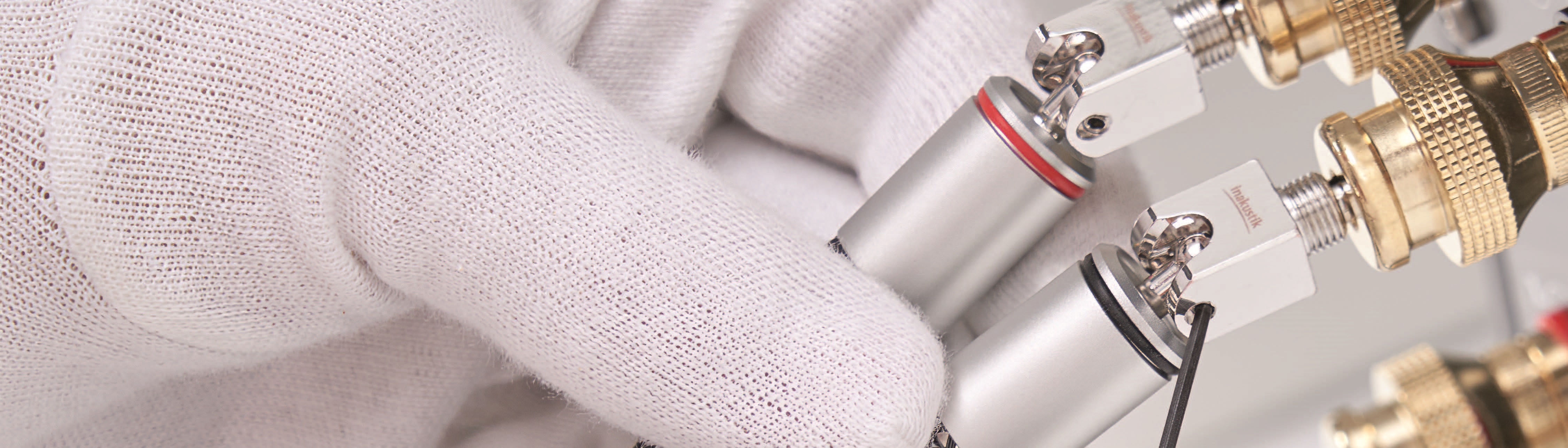 Das beste Kabel verliert immens an Qualität, wenn die Verbindungstechnik vernachlässigt wird. Reines Kupfer eignet sich an dieser Stelle nicht, da das Material zu weich ist. Wir von in-akustik verwenden daher Tellurium-Kupfer. Das Kupfer ist mit Tellurium dotiert. Die-se Metalllegierung ist härter. Der große Vorteil: Der hohe Leitwert bleibt im Wesentlichen erhalten. Im Vergleich zu Messing-Steckern zeigen sich deutlich bessere Leitwerte. Die zusätzliche Beschichtung mit Rhodium sorgt für eine langlebige, robuste Kontaktierung und hohe Korrosionsbeständigkeit. Das Edelmetall hält vielen Steckzyklen stand. Selbst bei häufigen Umbauten und Experimenten mit der Anlage bleiben die Kontakteigenschaften erhalten. Die gute, stabile elektrische Leitfähigkeit bleibt bestehen. Das sind Vorteile, ins-besondere gegenüber der Kontaktveredelung mit Gold, das weicher ist und sich schneller abreibt.