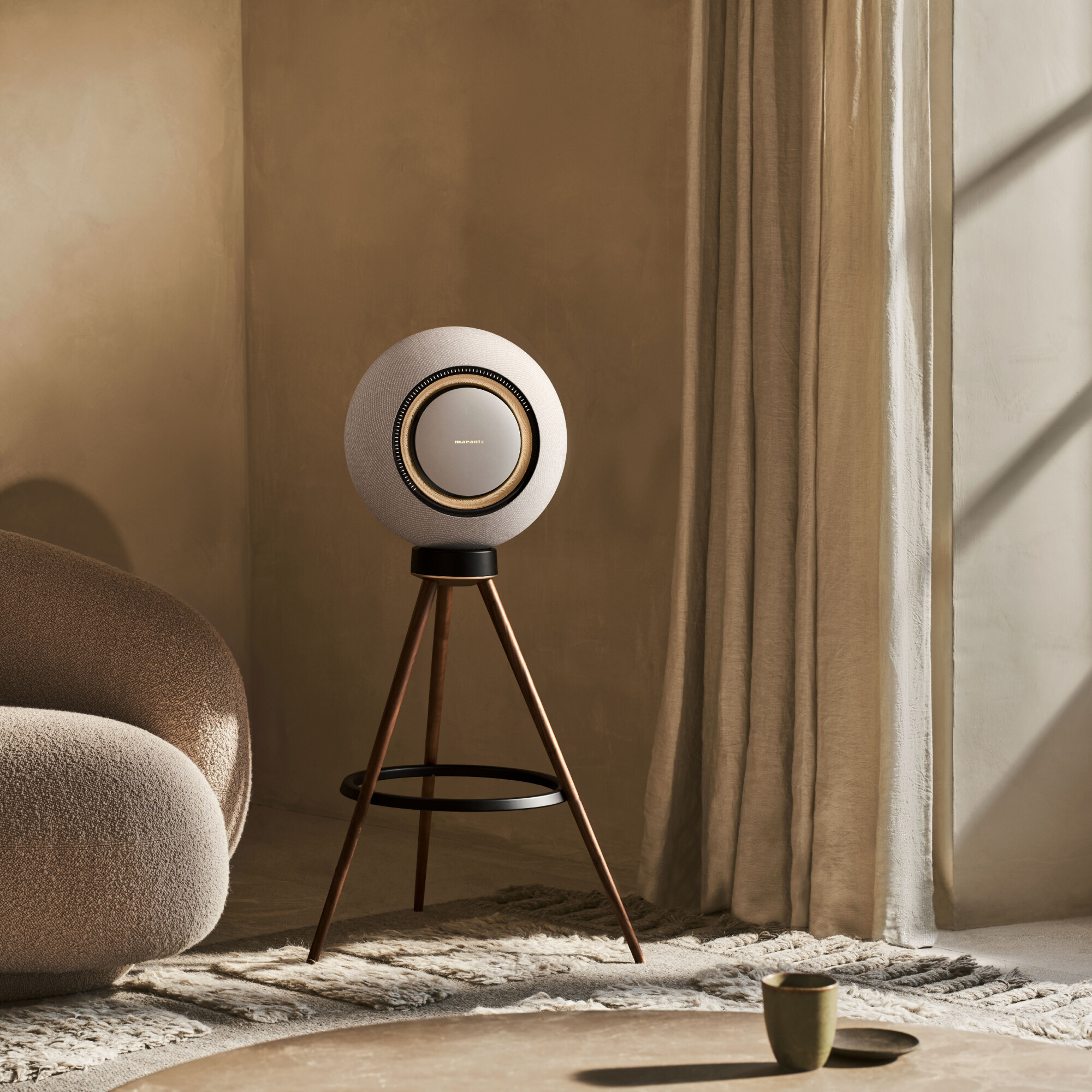 Der elegante Dreibeinständer aus amerikanischem Walnussholz und robustem Gusseisen mit luxuriösem, satinschwarzem Finish bringt Ihren Marantz Horizon-Lautsprecher auf die perfekte Höhe, um ein optimales Hörerlebnis zu schaffen. Inspiriert von den Walnussholzoberflächen, die bei den legendären Marantz-Verstärkern der Vergangenheit verwendet wurden, passt das Stativ zu jedem Dekor und ist so edel wie der authentische, natürliche Marmor, der für den Marantz Horizon Sockel verwendet wurde.
