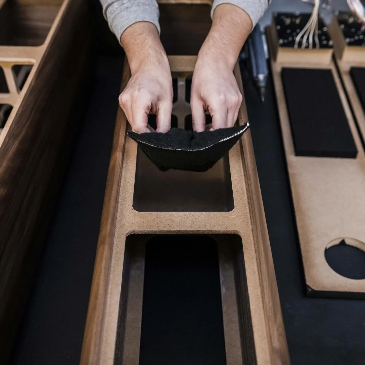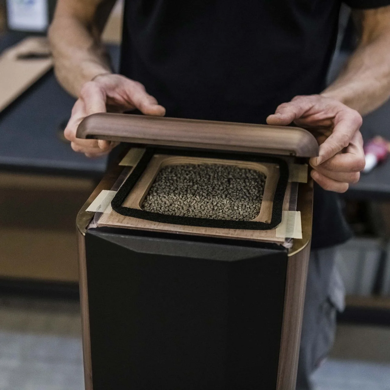 Die dritte Kammer, die von außerhalb des Lautsprechers sichtbar ist, dient der Aufnahme der Frequenzweiche und schützt sie vor möglichen Vibrationen, die von den Lautsprechern in der Akustikkammer erzeugt werden.