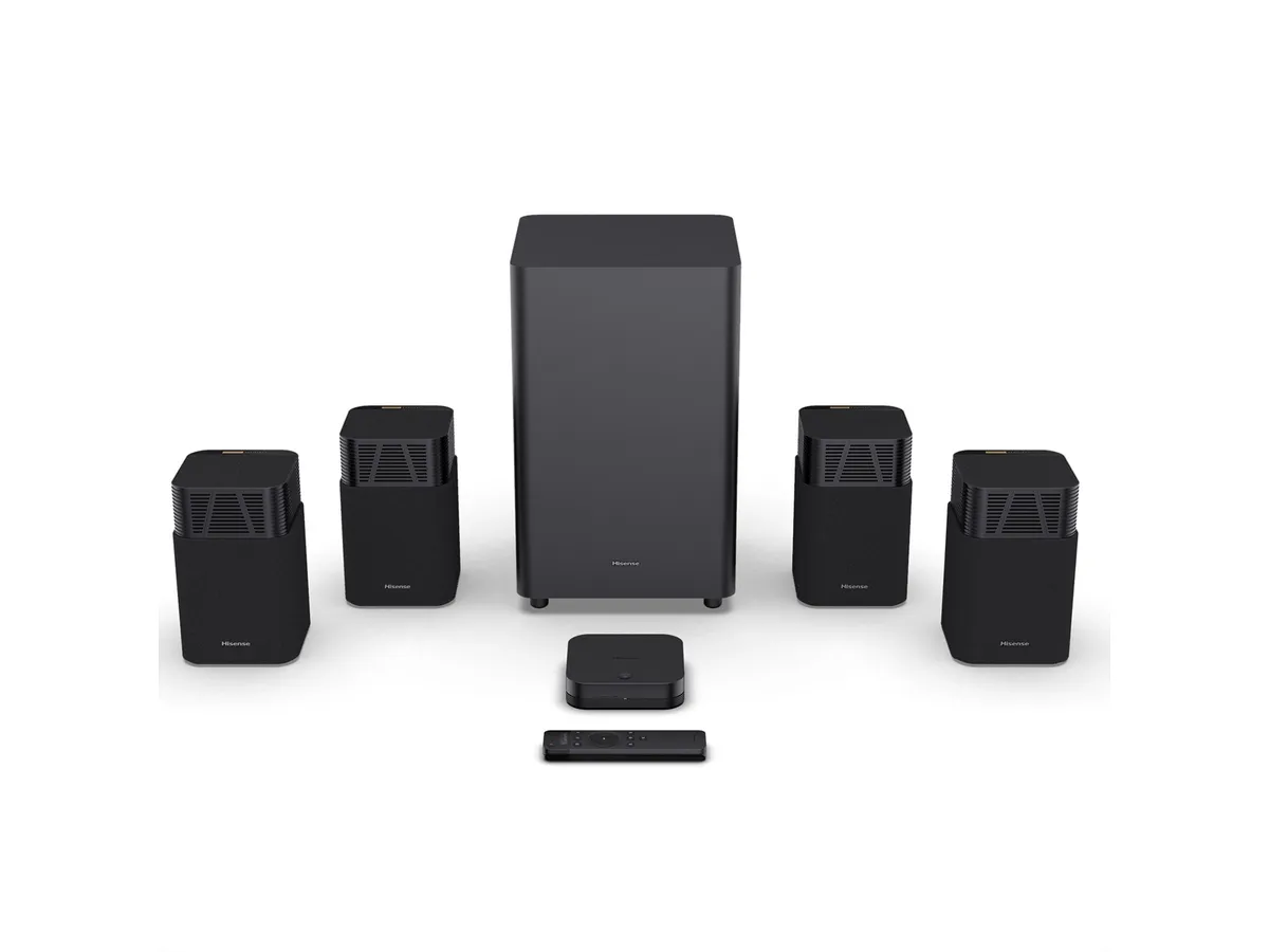 Das modulare System mit kabellosen Satellitenlautsprechern lässt sich flexibel im Raum platzieren. Besonders in Verbindung mit ausgewählten Hisense TVs profitieren Sie von Hi-Concerto* und der intelligenten Raumkalibrierung*, die den Klang an Ihre Umgebung anpasst – für ein rundum immersives 3D-Klangerlebnis.